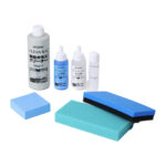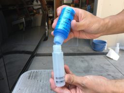 付属の緑のスポンジを使用し水で良く液剤を洗浄するこの時、水がベターとなると良い。