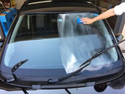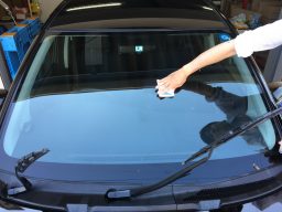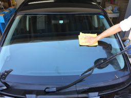 窓ガラスは施工前、タオルで拭くかガラス面を洗浄する