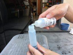 A液 フッ素液をブレンドボトルの所定の目盛りの所まで注入する