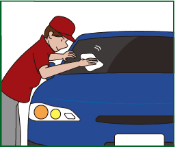 ガラスに付着している泥・汚れを洗いし(もしくは固く絞ったタオルで拭き)A付属の吸水タオルで水が残らないように拭き取る。
